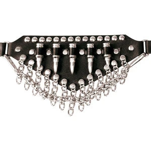 3 Inch Wide Triangular With Bullets & Dangling Chains Leather Bootstrap With Buckle