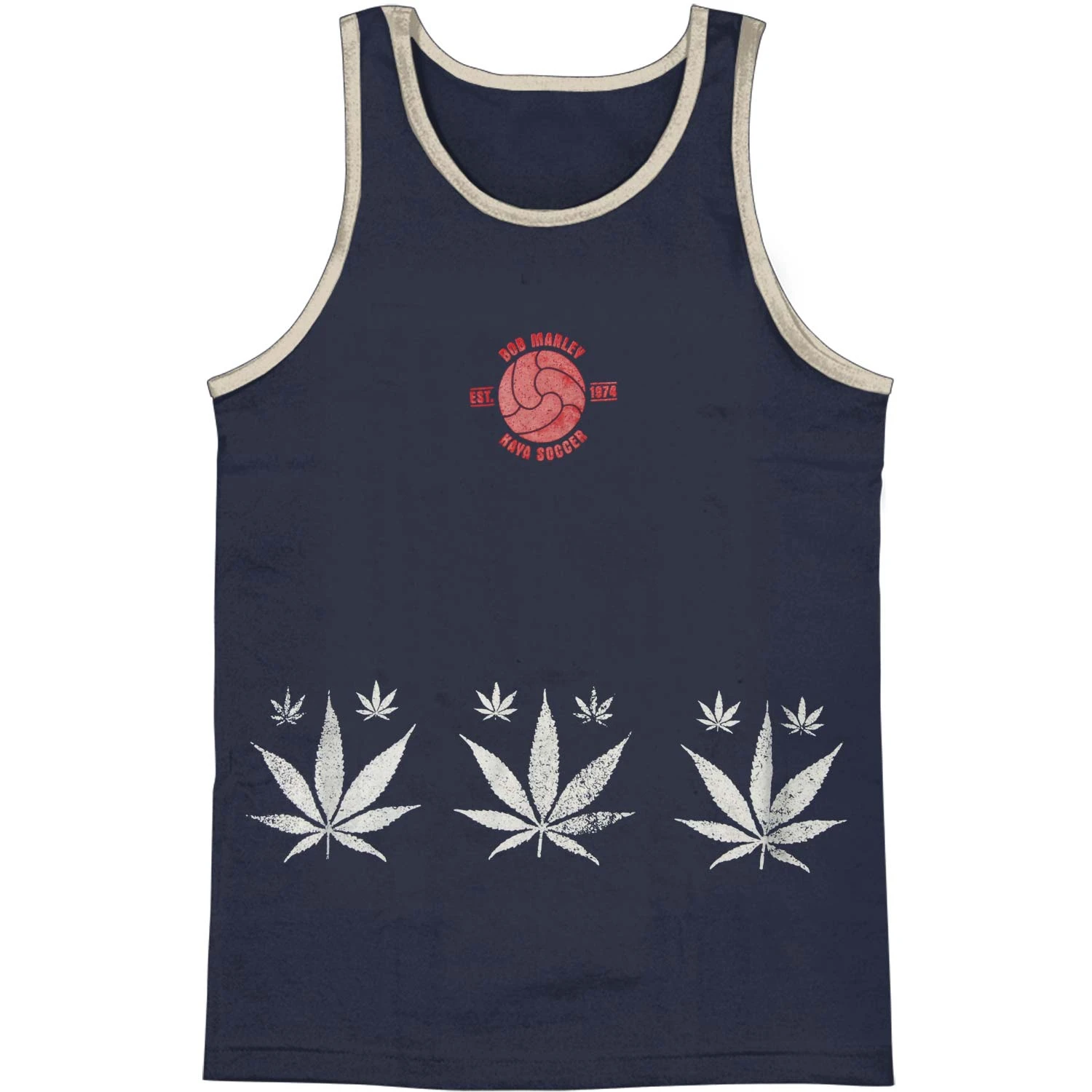 Red Est. 1974 Kaya Soccer Logo Above White Pot Leaves (70% Hemp and 30% Organic Cotton)