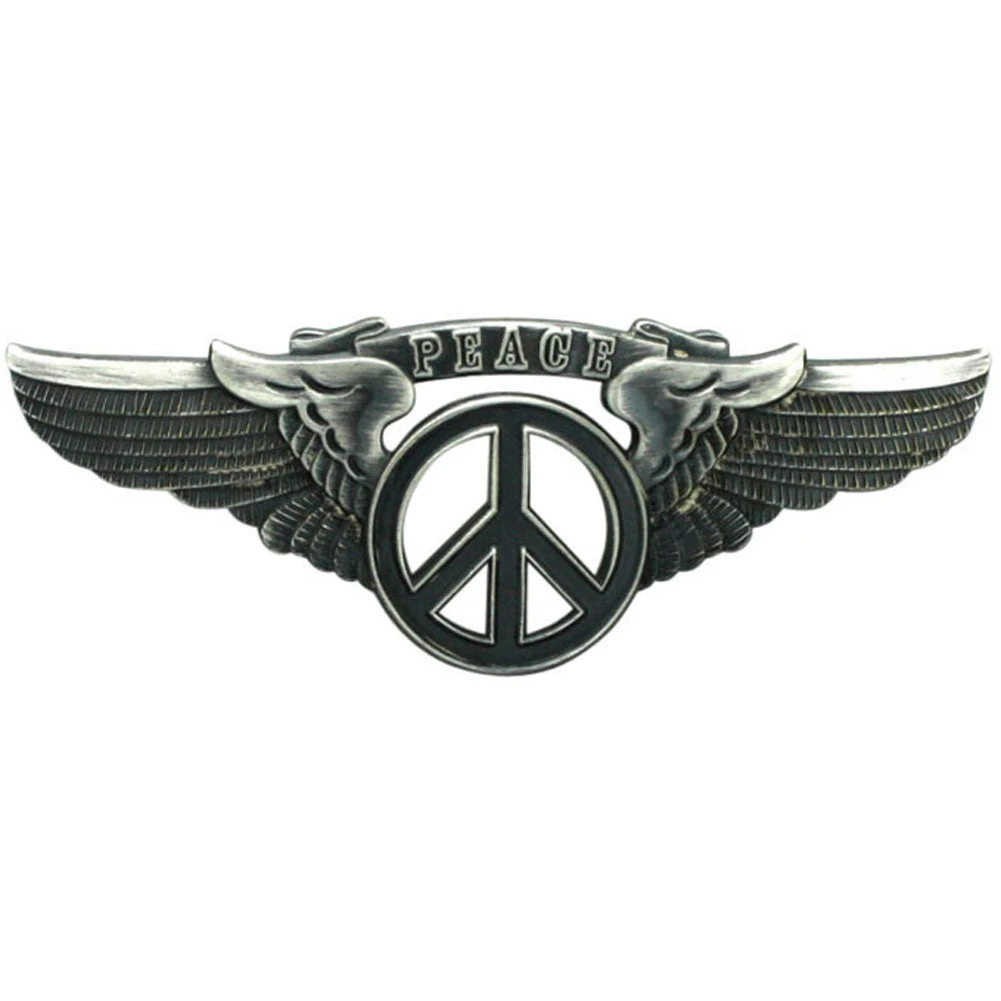 Die Cut Large Winged Peace Banner & Symbol Black Enamel Filled Rockwings Pin Badge (3 Inches)